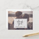 Romantic photo background with sheer white overlay. Send your thanks to guests and family from your newly minted marriage. Cute and funny, with your own touch.