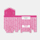 The background is a simple stripes pattern with fuchsia and white vertical stripes and confetti for an all-over geometric print. The design is suitable for all occasions, all ages, and all genders.