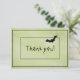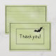 Customize your holiday Halloween thank you cards with this digital art with a black bat flying in the upper right corner on a textured green grunge background with narrow black frames. The words, "Thank you!" are in the centre with a text template so you can easily change it to your name, initial, or monogram. A great idea for your Halloween party. The back has the same green background, and is lined for a writing area.