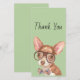 Watercolor hipster chihuahua with glasses and bow tie with a heartfelt "Thank You"