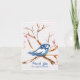 A thank you card for an intern featuring a little bluebird perched in a tree with heart shaped leaves on a pale pink background accented with tiny dots and classic blue text. On the back is a very light shade of grey with classic blue text that you can customize to fit your needs. You can change the size of the card and edit the text to fit your needs.