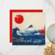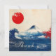 This thank you card from the Japonesque Harmony with Fuji collection is a bold and refined expression of appreciation, blending traditional Japanese motifs with modern elegance. The front showcases a dramatic and visually striking scene: a stylized wave inspired by classic ukiyo-e art crashes beneath a snow-capped Mount Fuji, set against a soft parchment-like background. A vivid red sun in the upper corner echoes the Japanese flag, while splashes of crimson to the right add dynamic contrast and emotional intensity. The words “Thank you” are written in flowing cursive along the base of the wave, adding a graceful touch to the powerful composition. The entire front is customizable, making it easy to tailor to your message and style.