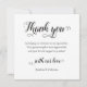 Add four photos and monogrammed initial to the front of elegant thank you card with wreath and linen effect background. On the back, "Thank you" is written in an elegant swirly black script above a personal message to your wedding guests which can be personalized. Also, "with our love" is in same script; add your names below.