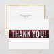 THANK YOU NOTE modern bold block maroon red gold Card