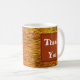 Looking for a gift for someone special? This morning tea or coffee mug features beautiful autumn colours of orange, yellow, and brown. The background displays thin horizontal lines in fall colours that resemble straw or dried grass. Squares appear on both sides of the mug in rusty orange providing the solid background for "Thank You" which can easily be customized if you desire.