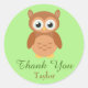 Great for a bridal shower, birthday party, or any other event, these thank you stickers features a green background with a brown owl. With big round silver eyes that just beckons you, "Thank You" is written underneath in green. Underneath your name is presented in brown. Customize the size, colour and style of font. Place your order today!