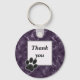 Saying thank you to your pet sitter is simple with this elegant, dark purple keychain. This design features a marbled texture, deep purple background with a black paw print across the corner of the solid text box. Customize the words "thank you" if you desire.