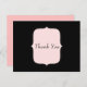 Set upon a black background, this pink frame features "Thank You" written in black. On the back is a pink background with red font. Send a thank you card today!