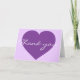 This card features a shapely purple heart overlaid by the template text, "Thank You." Click "Customize it!" to re-size/re-position purple heart image, change background colour, and/or personalize text. Customize font style, colour, and size.