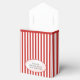 The background is a simple stripes pattern with red and white vertical stripes for an all-over geometric print. The design is suitable for all occasions, all ages, and all genders. Use these little boxes to wrap small gifts or party favours for birthdays, anniversaries, graduations, showers, and more.