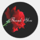 Round sticker shown with a black background and a beautiful red rose. Text: Thank You Customize this item or buy as is.