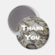 Appreciation magnets are an inexpensive way to express your thanks to someone special. The beautiful pattern of a wind and water-worn piece of driftwood provides the rustic design on this round magnet. The artistic swirls and colours of this woodgrain create a gender-neutral background for "Thank You" which can easily be customized if you desire.