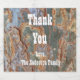 These appreciation beer bottle labels feature a rustic tree bark photo that captures green and brown bark with curved lines. This beautiful tree trunk pattern provides a gender-neutral earth tone background for "Thank You" and your family's name which appears in the centre in white font.