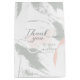 Thank your wedding party or guests with these 7” x 4.5” x 10” gift bags featuring the greeting, "Thank you," in large grey letters on an abstract watercolor floral design in soft blush, white and sage with placeholders for the wedding couple's first names and wedding date.