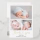 Modern thank you card , 4 photos baby birth announcement , with a cool elegant hand written style brush script and heart and editable colours on white with real gold foil. Add 4 of your favourite baby photos.