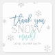 "THANK YOU SNOW MUCH!" Celebrate this special milestone with this stylish and modern winter themed thank you sticker. Featuring chic handlettered script typography and faux silver glitter snowflakes. Modern, bright and colourful.