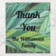 Add a tropical treat to your words of appreciation with these wine bottle labels featuring large striped green leaves. This beautiful foliage common in the tropics overlaps creating layers of green and yellow leaves. The stripes seen on the leaves create an abstract geometric pattern in lovely shades of green. "Thank You" and your family's name appears centred in black font and can easily be personalized.