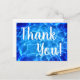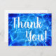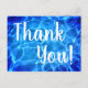 Aqua blue swimming pool water photo with a bright filter. White calligraphy style "thank you" text. Create your own thank you postcards after your special event at a poolside venue.