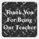Thank You Teacher Elegant Black White Appreciation Square Sticker