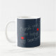 This mug offers a student or the entire class a way to say thank you to their special teacher. "Thank you for being my teacher" is featured in pale blue stripes along with two bright red apples. The design appears on both sides of this morning coffee or tea mug. The dark blue background can easily be customized to your desire.