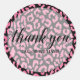 Thank You Text Pink Black Leopard Classic Round Sticker