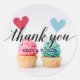 Thank You Text Pink Blue Heart Cupcakes Classic Round Sticker
