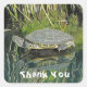 Do you love turtles or are you a nature enthusiast? This square thank you sticker features a photo that captures a turtle resting on a rock against a backdrop of moss and reeds. The turtle's and reed's reflections can be seen in the lake water. The words "Thank You" appear in the water and may be customized if you desire.