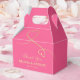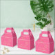 NewParkLane - Elegant personalized wedding favour box, with a two faux gold swirly hearts, against a fuchsia / hot pink background.