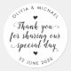 A Classic Black Thank You Wedding Sticker featuring "Thank You For Sharing Our Special Day" in a rustic modern elegant font calligraphy.