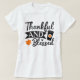 Wear this stylish design including a coffee cup and the text, "Thankful and Blessed."