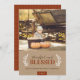 Affordable custom printed Thanksgiving photo cards with simple templates for customization. This modern rustic design has a mix of typography in warm autumn neutrals on a faux kraft paper background. The wording says "Thankful and Blessed - Happy Thanksgiving". Personalize it with your photos and add your family name and the year. Reverse side has space for additional photos and text. Use the design tools to edit the text, add more photos and create a unique one of a kind Thanksgiving photo card design.