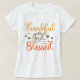 A decorative typography quote design for Thanksgiving or autumn season, that reads: "Thankful and blessed".
