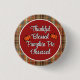 Thankful, blessed, pumpkin pie obsessed - fun button for Thanksgiving or any day for the pumpkin spice fan. Festive, orange pumpkins on a rustic brown, grey, orange, yellow plaid background.