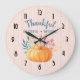 Thankful Grateful Blessed with Orange Pumpkin Large Clock
