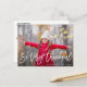 A white Hand script design with a lovely family photo and a personalized greeting message at the back. The text and colours can be personalized as well as the family photo.