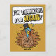 This funny vegan Thanksgiving postcard features a cartoon turkey in a pilgrim hat saying, "I'm Thankful for Vegans." Also available on t-shirts, aprons, bags, apparel, and other gift ideas.