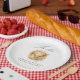 Elegant Thanksgiving paper plates with the headline "Thankful" in modern script font above a watercolor illustration of a roasted turkey. Personalize by adding your family name.