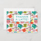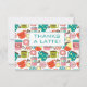A colourful coffee and doughnuts pattern greeting card. Bright and cheerful this design is perfect to say 'Thanks a latte!' A fun card to show your appreciation to a coffee lover. The back is left blank so you can write your own message or attach a gift voucher.