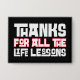 Say it loud—whether you mean it sincerely or with a wink. This bold button features the phrase “Thanks For All The Life Lessons” in striking white text, with “For All The” outlined in red on a deep black background. A small but mighty way to show gratitude, humour, or both. Great for backpacks, jackets, lanyards, or gifts.