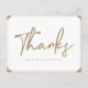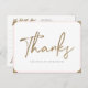 Send your love and thanks to your bridesmaid with our modern thanks postcard. The design features "Thanks" designed in a modern brush style script font in faux gold. Faux gold photo corners are added to the edges of the postcard. The reverse side features xoxo and love, with blank lines added to write your own personal message.