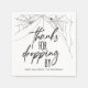 Use personalized napkins for your Halloween party. The design features the text "thanks for dropping by" in a hand-lettered font with spider webs as a border.