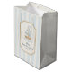 Send your guests home with a splash of sweetness using this charming nautical-themed gift bag! Featuring a soft pastel blue and white striped background, a hand-painted watercolor sailboat, and the message “Thanks for sailing by!”, this bag is the perfect favour for ocean-loving kids, first birthday celebrations, or beach-themed baby showers.