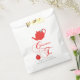Delight your guests with this elegant Christmas tea party favour bag to express your thanks for their participation in your holiday tea celebration. Thank you text may be customized using the template provided. Red teapot with silver bow pouring out a pretty Christmas ball over graceful font. All covered with vintage red lace.