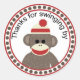 Thanks for swinging by sock monkey round sticker