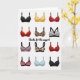 This greeting card features nine illustrated bras arranged in a neat 3×3 grid on a bright white background. Each bra has a different style and color, making the design fun and easy to take in. There’s a black bra with white scalloped trim, a bold golden-yellow push-up style, a leopard-print design, and a red bra decorated with small white hearts for a romantic touch. The illustrations have soft shading that gives each bra a slightly rounded look. Centered in the middle of the grid is the message “thanks for the support,” written in casual, handwritten-style lettering. The clever wording ties the whole design together and adds a light, affectionate tone. This card is a fun and thoughtful way to show appreciation, affection, or Valentine’s Day love to someone special.