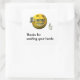 A sticker for promoting hand washing. With cute smiley face character saying "Thanks for Washing your hands"