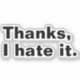 Grab this "Thanks, I hate it." funny saying tee shirt for awkward social events and cringeworthy moments. Show your sense of humour by wearing this basic cool text style. for Black and White Contemporary Art Lovers. I'm sure that it can spark many conversations and will help with breaking the ice. This funny awkward design is a great gift idea for employees, colleagues, coworkers, managers, supervisors, friends, or family, and also makes a great birthday, holiday gift, or Christmas present. Celebrate any occasion with a touch of personality and comfort! (YOU CAN CHANGE AND CUSTOMIZE THIS TEXT DESIGN OR ANY TEXT YOU WANT IN TEXTIFY STORE!).
