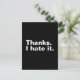 Grab this "Thanks, I hate it." funny saying tee shirt for awkward social events and cringeworthy moments. Show your sense of humour by wearing this basic cool text style. for Black and White Contemporary Art Lovers. I'm sure that it can spark many conversations and will help with breaking the ice. This funny awkward design is a great gift idea for employees, colleagues, coworkers, managers, supervisors, friends, or family, and also makes a great birthday, holiday gift, or Christmas present. Celebrate any occasion with a touch of personality and comfort! (YOU CAN CHANGE AND CUSTOMIZE THIS TEXT DESIGN OR ANY TEXT YOU WANT IN TEXTIFY STORE!).