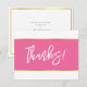 A simple "thanks" in faux gold foil, handlettered script type with photo and your message on the back - a simply perfect THANK YOU for your wedding, or any other event