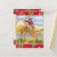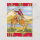 A sharp Western-style thank you card for parties with a Wild West Cowboy or Rodeo theme! Great for kids and adults alike! The front of the invite shows a vintage-style cowboy riding his bucking horse while twirling his lasso. There are deep red borders at the bottom and top with a pattern of saguaro cactus plants inside. The back of the card says: Thanks Partner (which can be customized). The rest is blank space for you to write in your personal note.